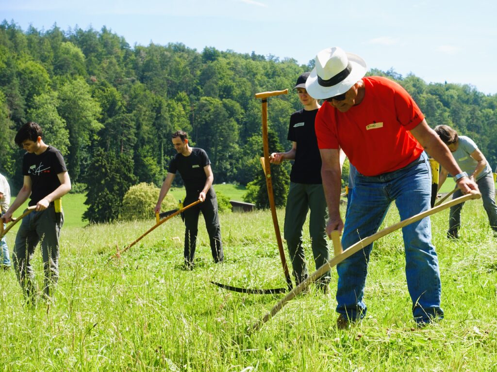 Um Naturwiesen möglichst (tier-)schonend und umweltfreundlich zu pflegen, empfiehlt sich das Mähen mit der Sense. Dies will jedoch gelernt sein. Landwirt und Sensenfabrikant Martin Strub führt in Grundlagen ein und hilft, den eigenen Mähstil und Bewegungsablauf zu finden.